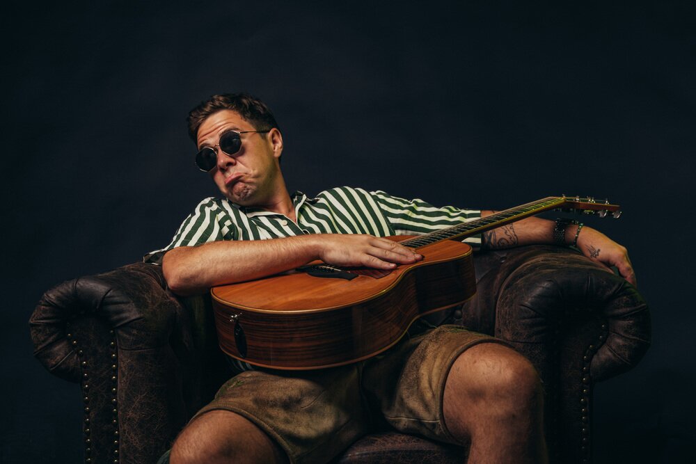 Relaxte Gitarrensounds im Stil von John Mayer und treibende Stompbox-Beats treffen in seinem musikalischen Menü auf fast schon valentineske Wortspiele und eine Verschmitztheit, die an eine jugendliche und extrem coole Version von Fredl Fesl denken lässt. Getragen von den Vibes des Publikums lässt sich der Hafner Beni (so steht’s in seinem Pass) vom siebten Sinn treiben und besingt alles, was ihm das Leben und die Weltlage vor der Nase so bietet. "Zebrastreifenpferd" meets "Busheislparty" und "Cocktailschirm im Arsch" folgt "Wackelkontakt". „Es duad ma leid Mama“, aber es gibt hoid koane Wunschkonzerte… also „Kimm ma ned auf de Tour“.